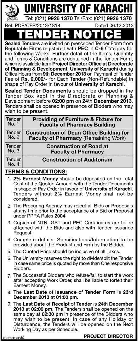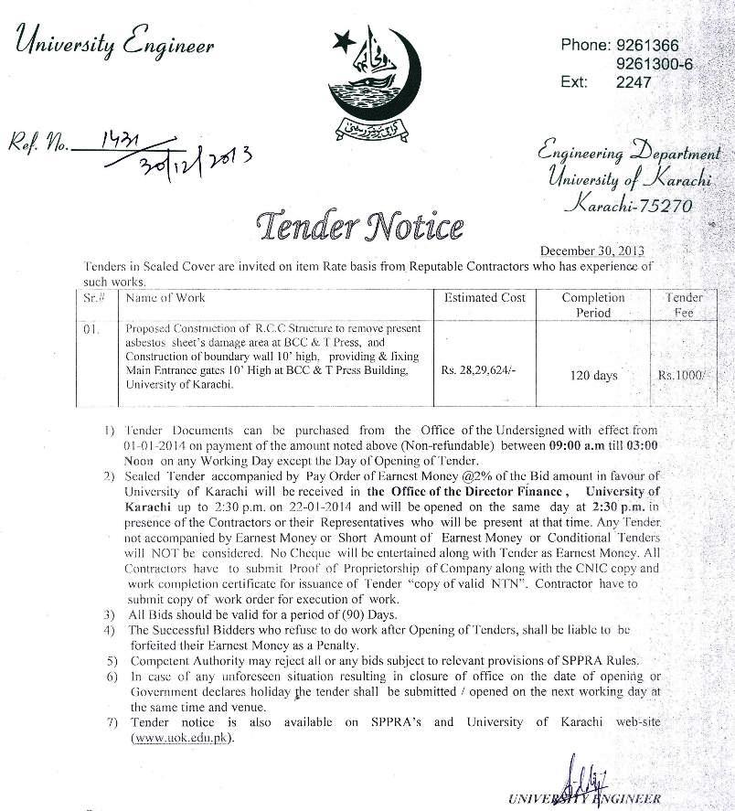 Dated : 29/12/13 Tender : Notice | Form-Front | Form-Back |