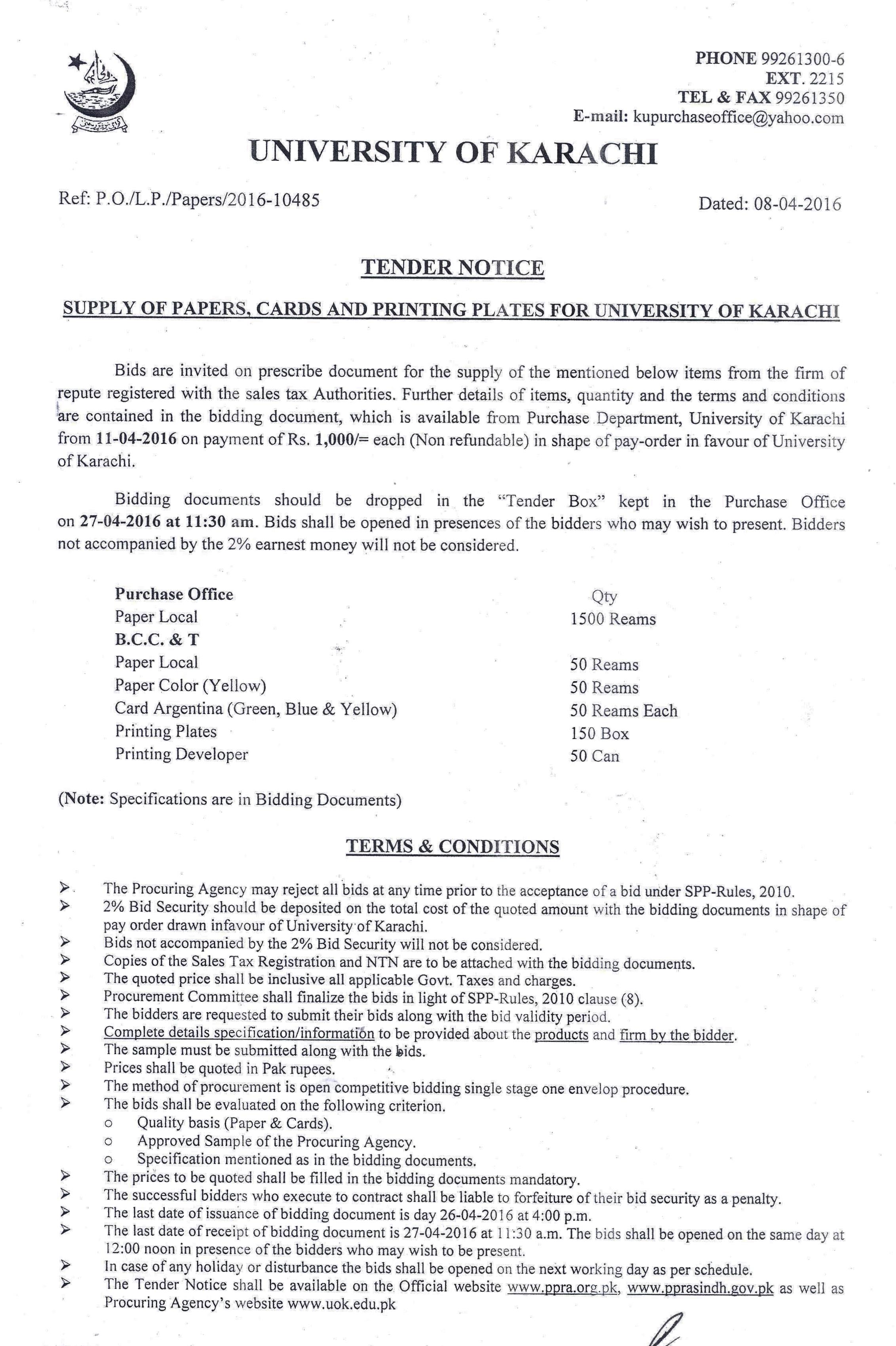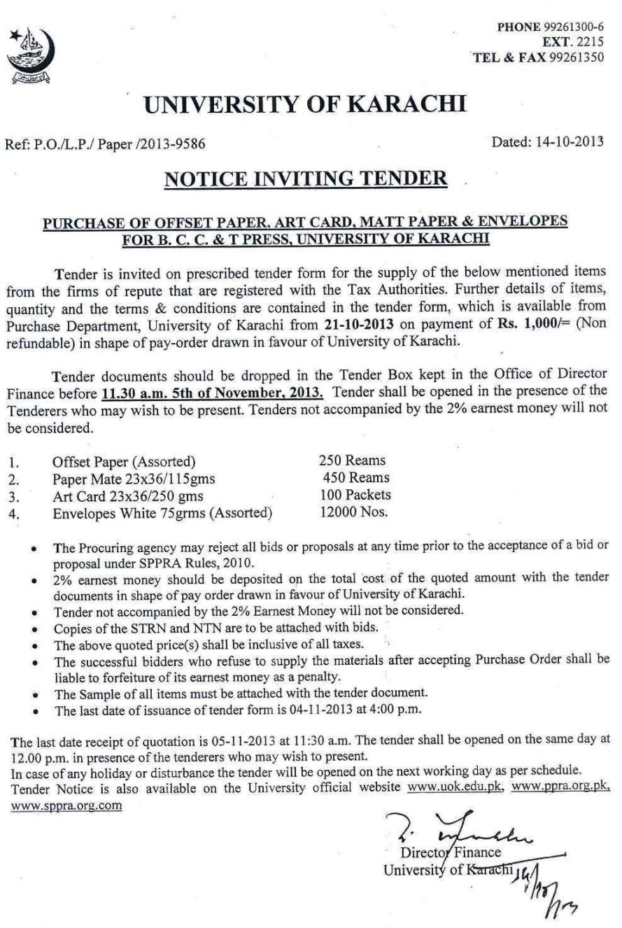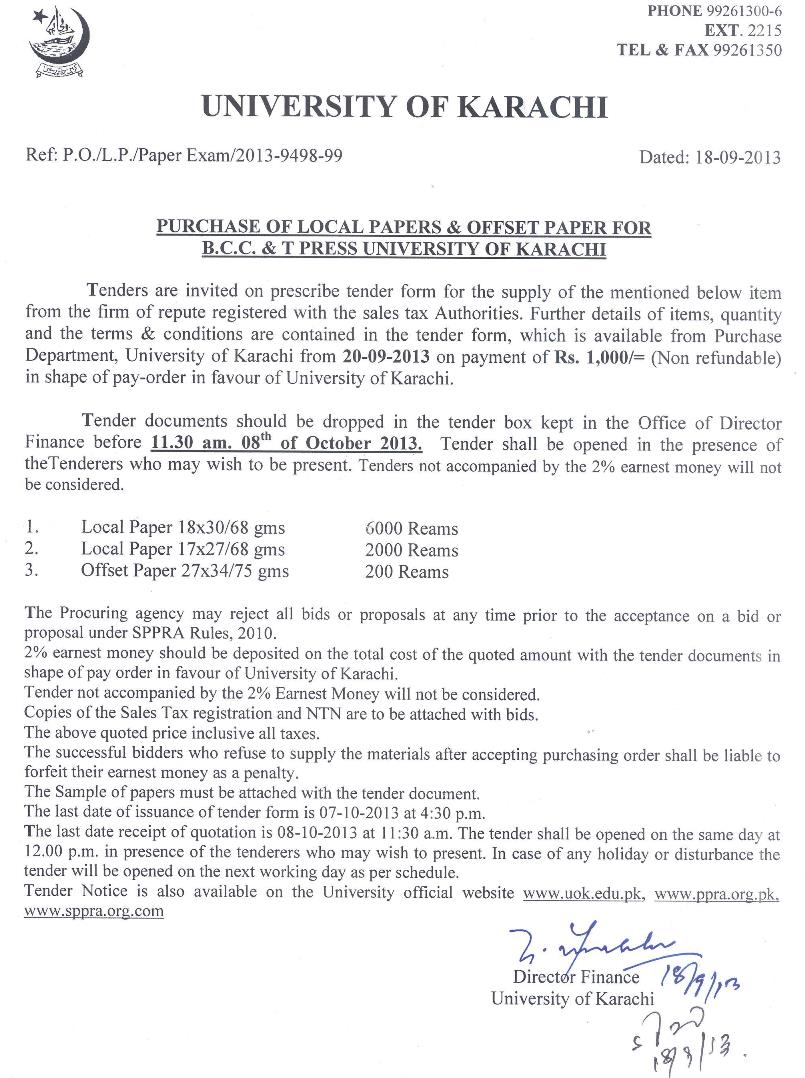 Dated : 12/08/24 Tender : Notice | Local paper (BCC&T) | Duplicating Paper (Examinations) | Offset & Duplicating Paper (Purchase Office) |
