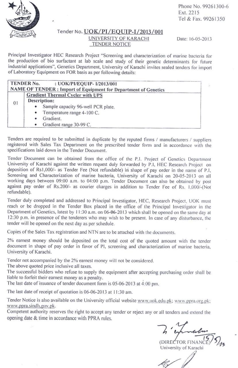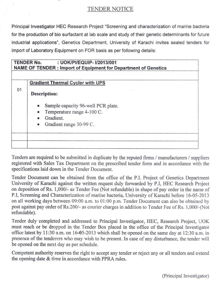Dated : 30/04/13 Tender : Gradient thermal cycler :: Notice |
