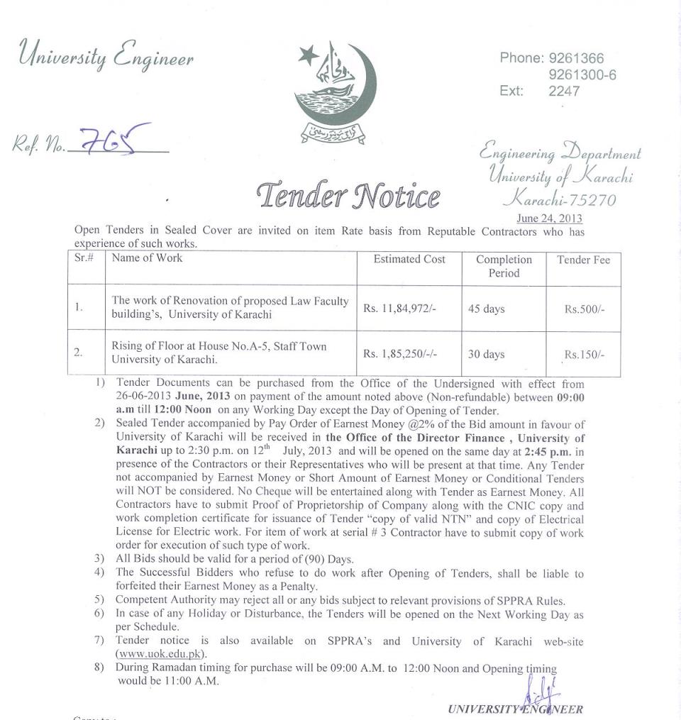 Dated : 26/06/13 Tender : Renovation work Notice |