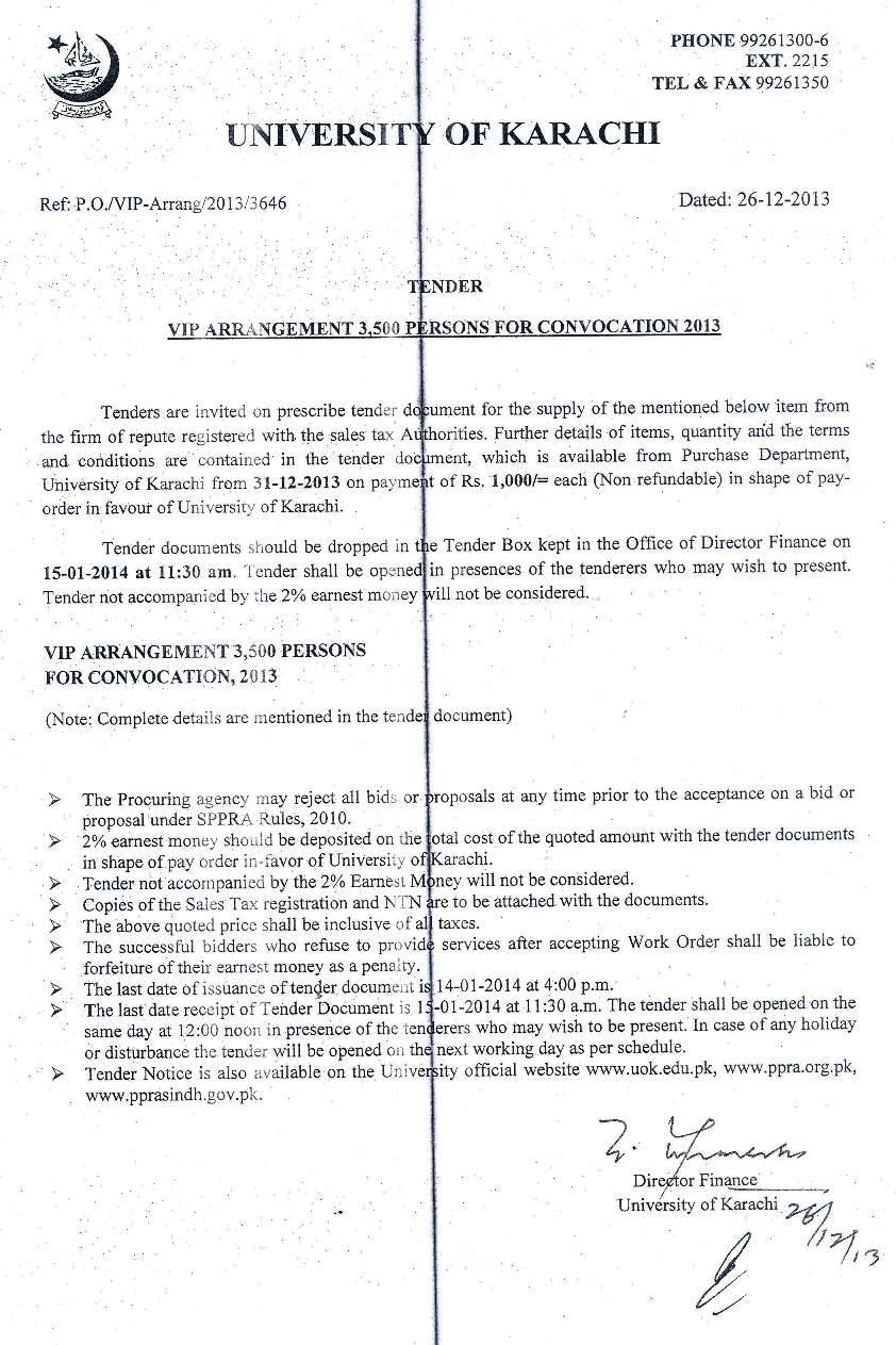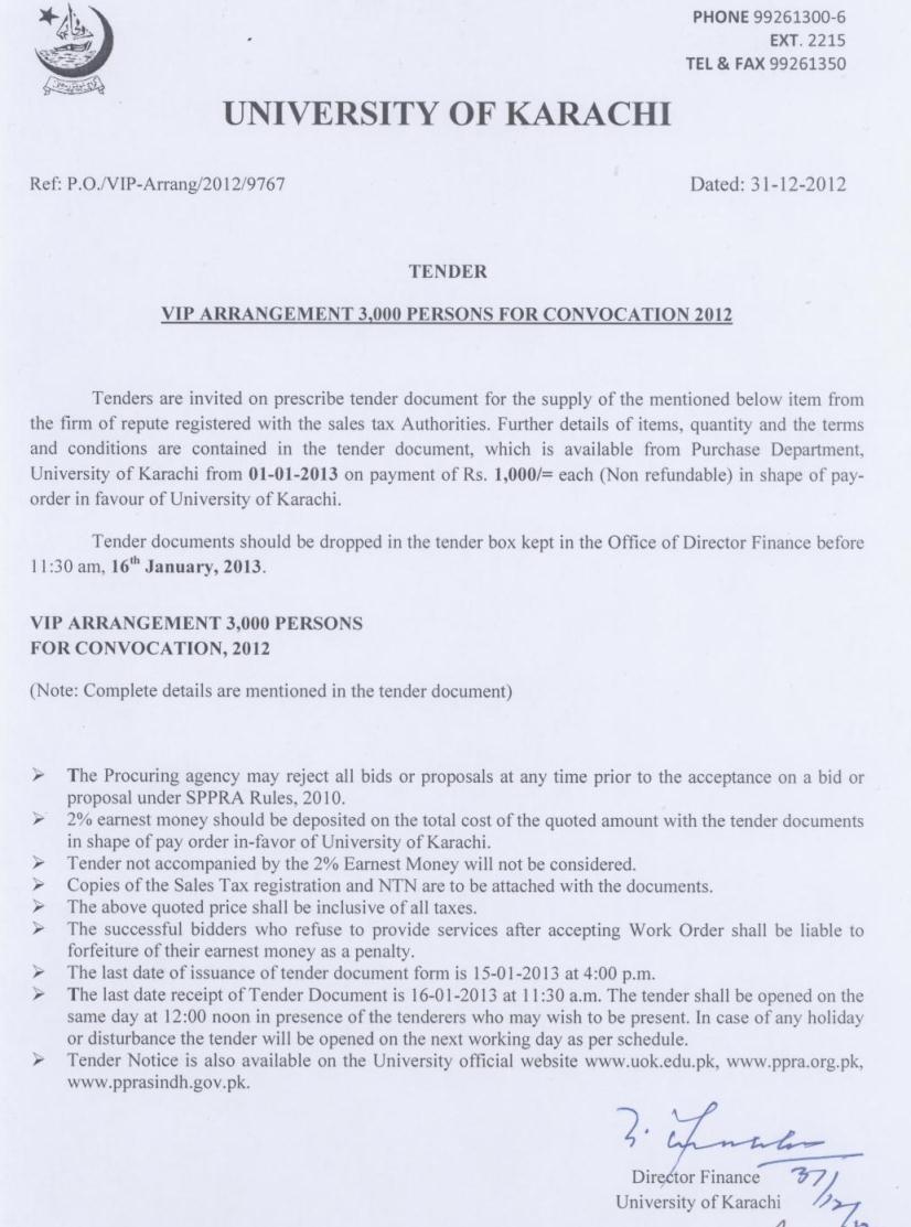 Dated : 04/01/13 Tender : VIP arrangement 3,000 persons for convocation 2013 :: Notice |