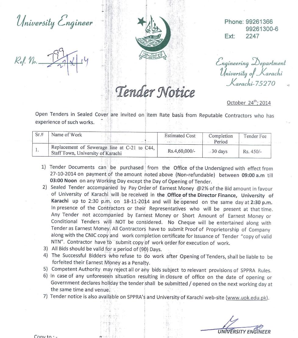 Dated : 28/10/14 Tender : Notice |