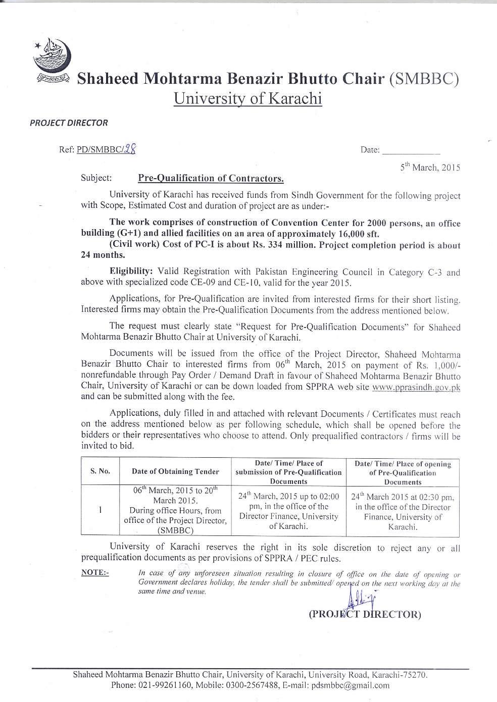 Dated : 05/03/15 Pre Qualification : Notice |