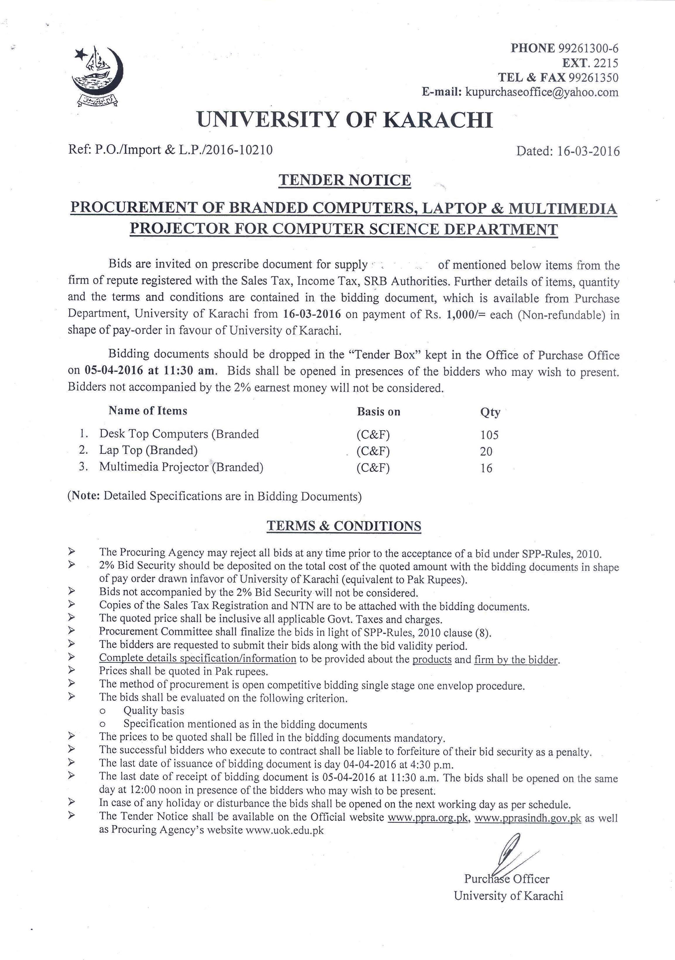 Dated : 09/10/25 Tender Notice for Computers and Multimedia Projector (MCD): Click here |