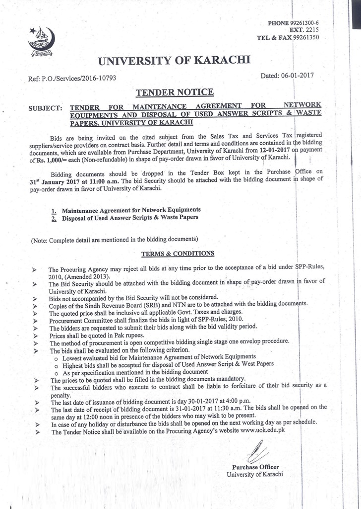 Dated : 06/01/17 Tender : Notice |