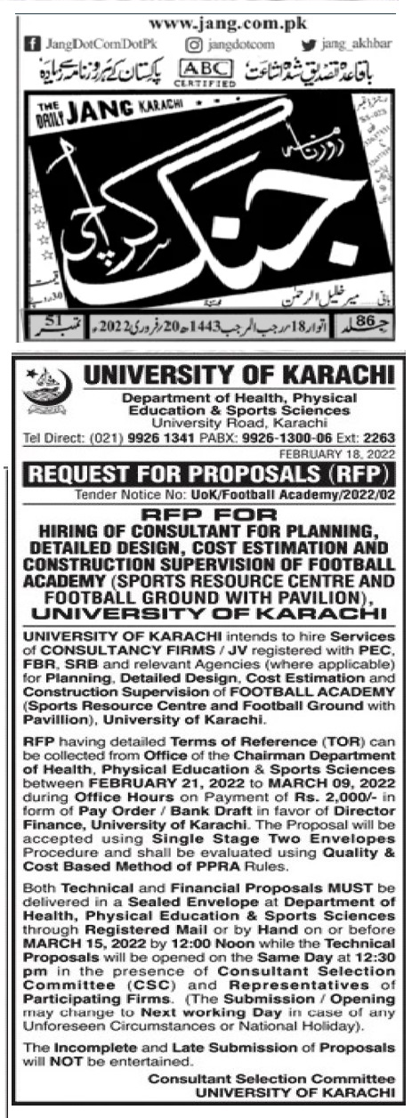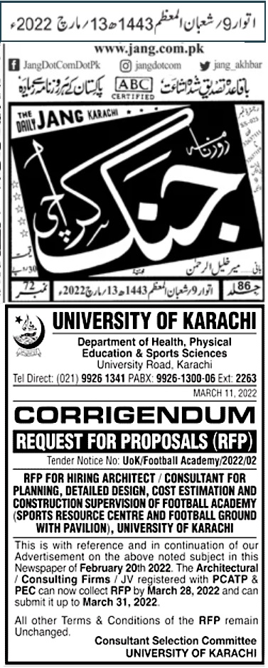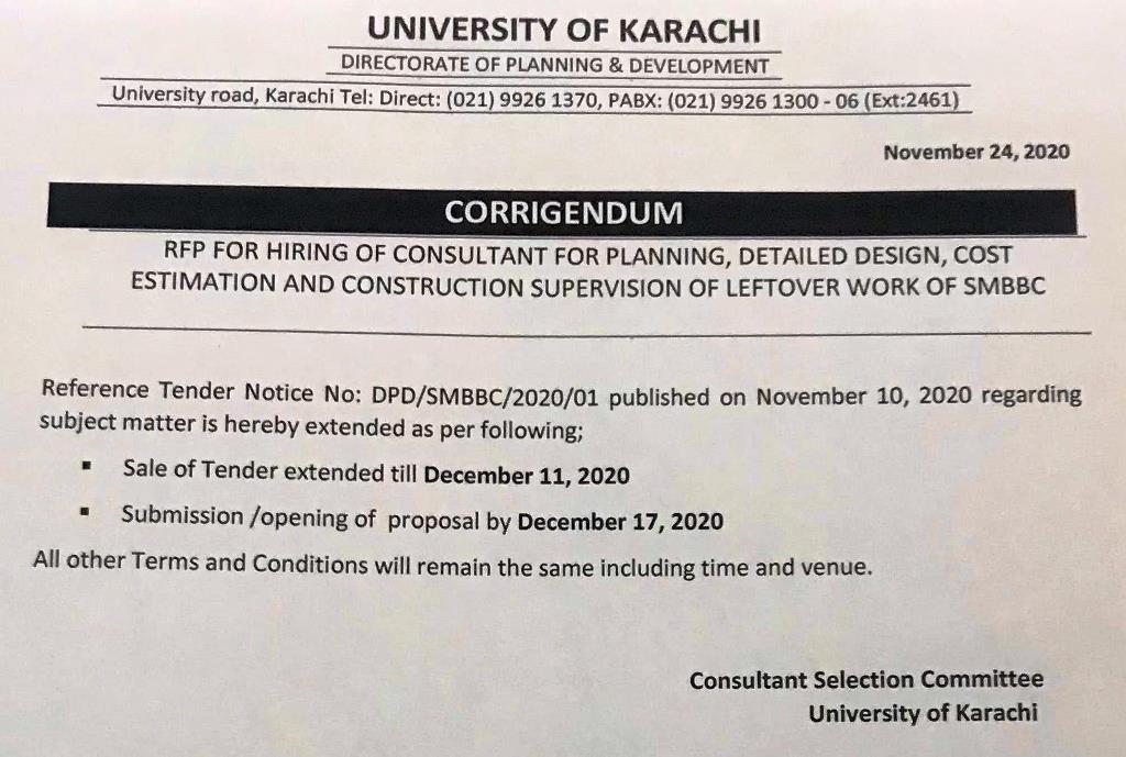 Dated : 21/07/22 Tender : Water Proofing (Geology )/ Water Pipeline C&D Quarters / Antenna Tower (FM90.6 MCD) - Corrigendum |