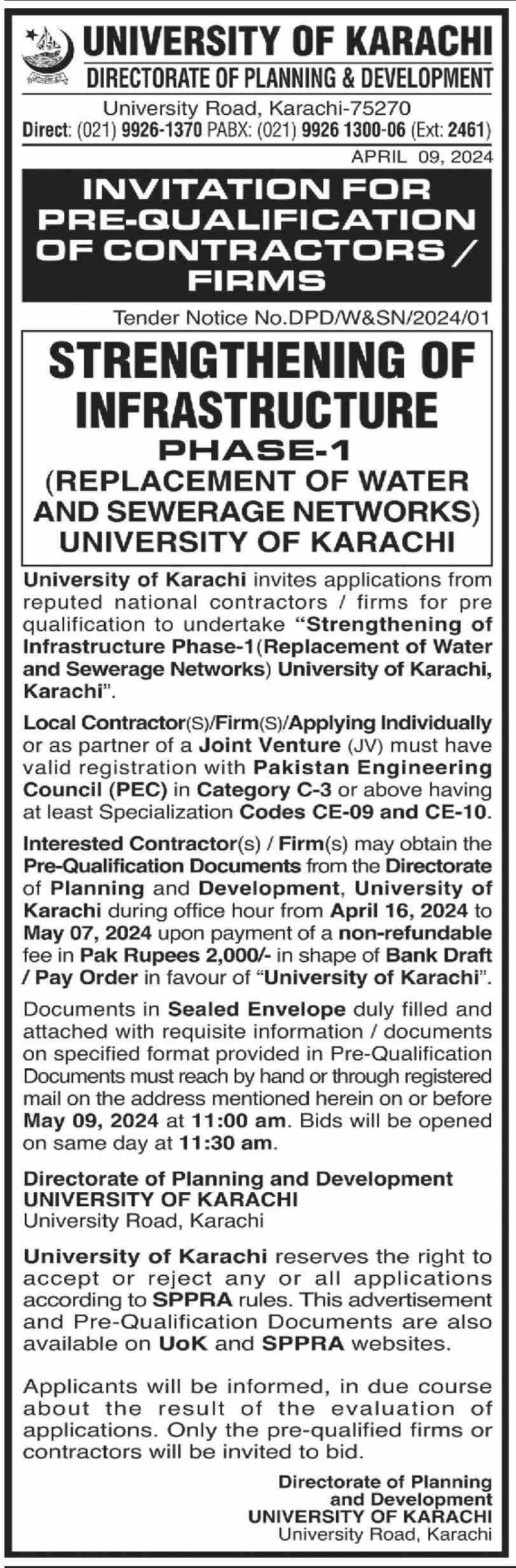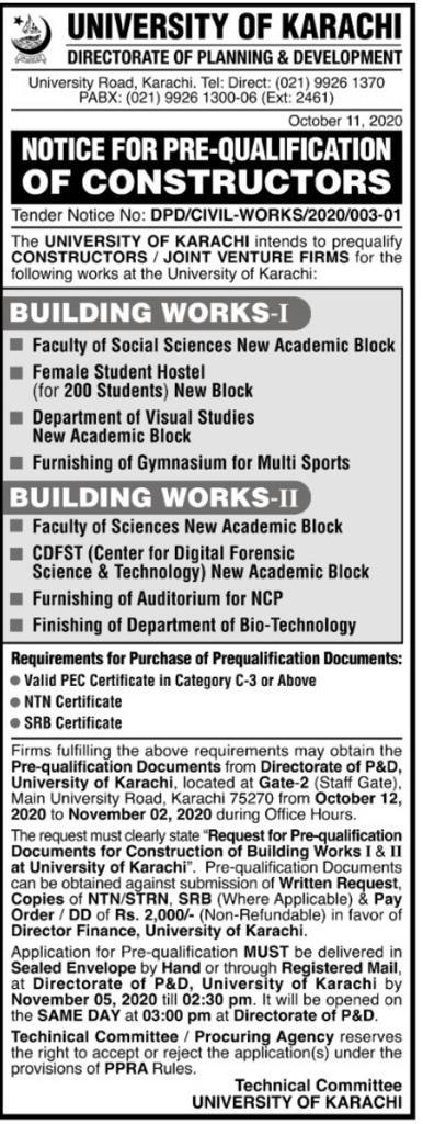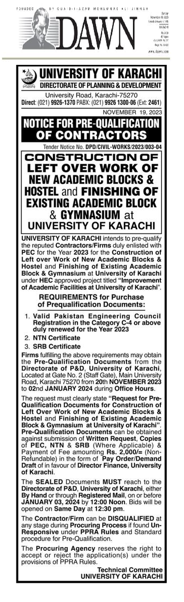 Dated : 19/11/23 Pre-qualification of Contractors for left over Civil works " (Tender No. DPD/Civil-Works/2023/003-04) : Notice |