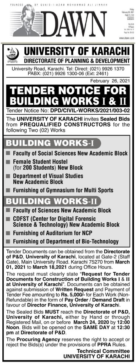 Dated : 01/03/21 Tender : Notice | Tender - I | Tender - II |