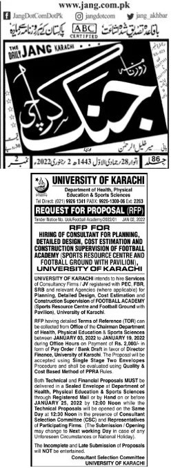Dated : 29/06/22 Tender : Water Proofing (Geology )/ Water Pipeline C&D Quarters / Antenna Tower (FM90.6 MCD) - Notice | Form |