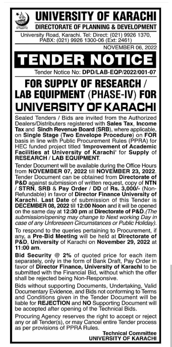 Dated : 07/11/22 Tender : Lab Equipment-Phase-IV |