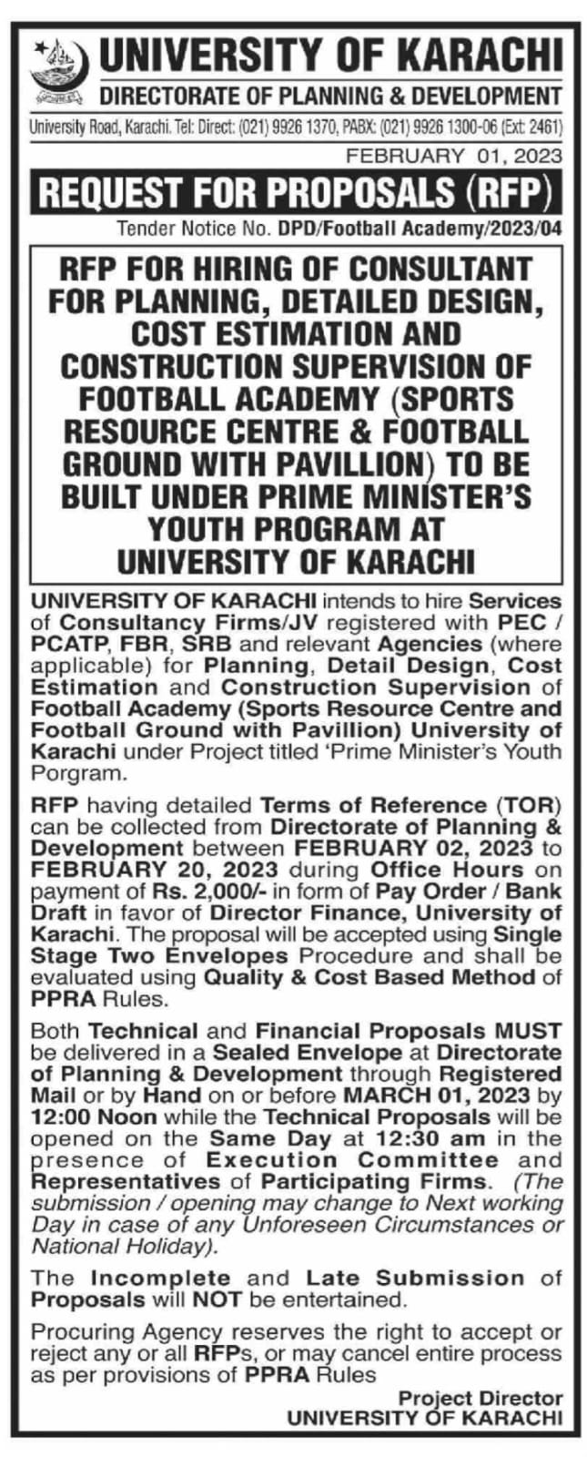 Dated : 02/02/23 Hiring of Consultant for Football Academy : Notice |