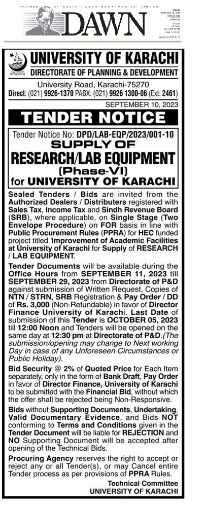 Dated : 11/09/23 Tender Research/Lab Equipment Phase-VI : Notice |