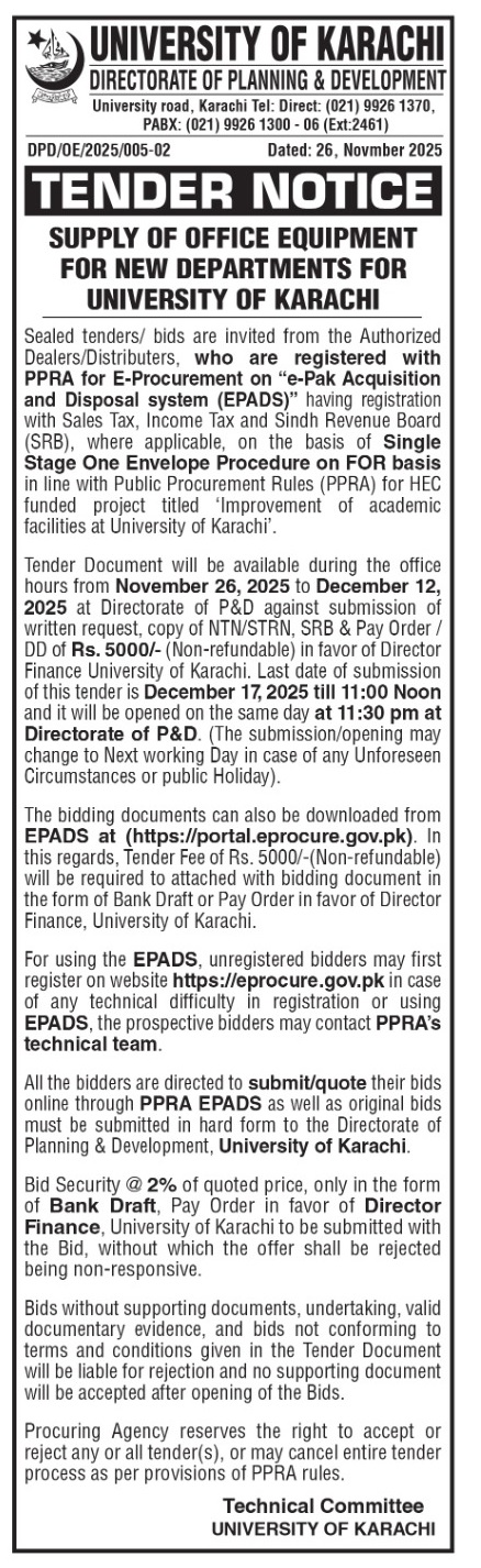 Dated : 29/09/25 Tender Notice for Office Equipment for New Departments : Click here |