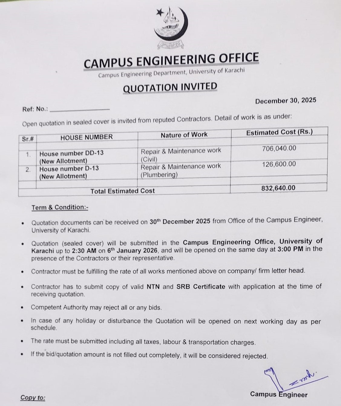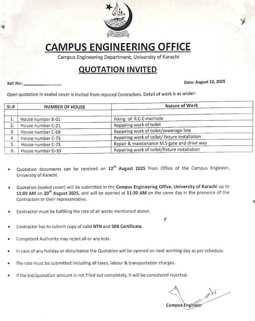 Dated : 03/09/25 Quotation Invited (Campus Engineering) : Click here |